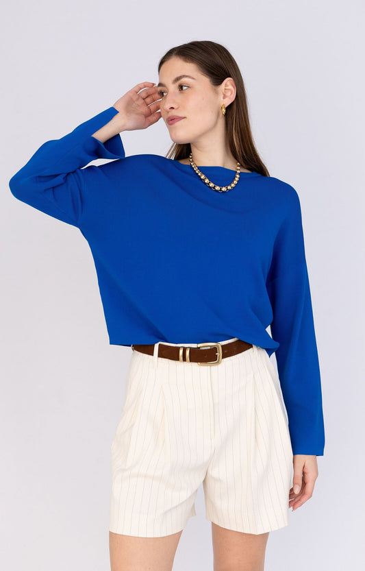 ANNA T-SHIRT BOXY INDIAN BLUE SOLID