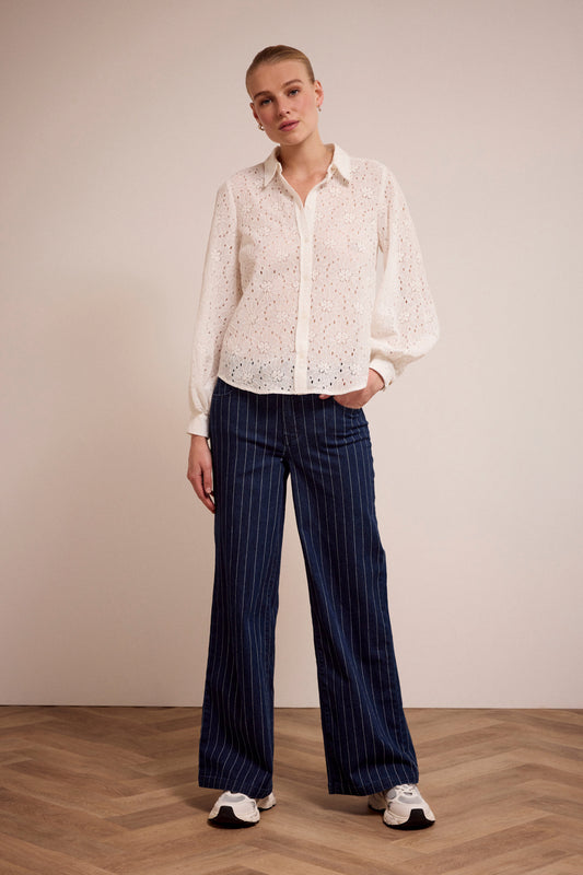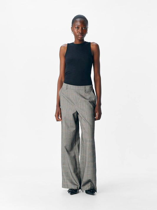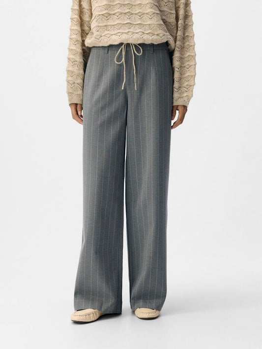 OBJECT BROEK LISA WIDE MEDIUM GREY MELANGE/HUMUS PINSTRIPE