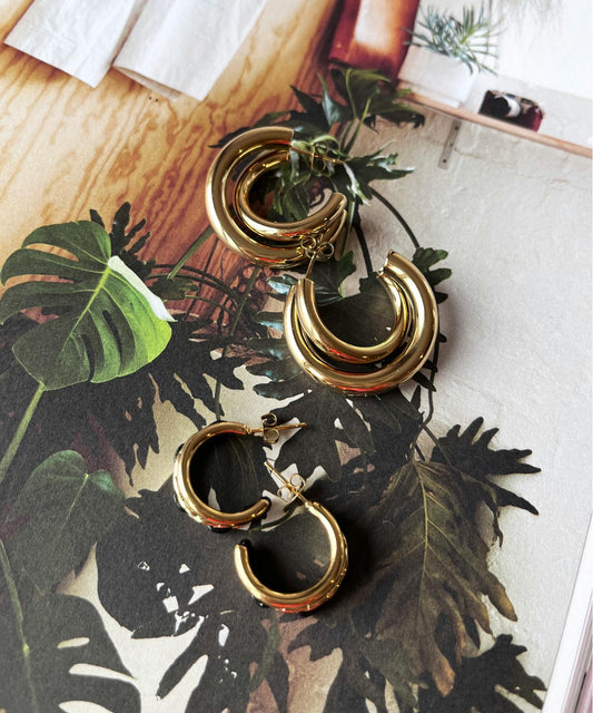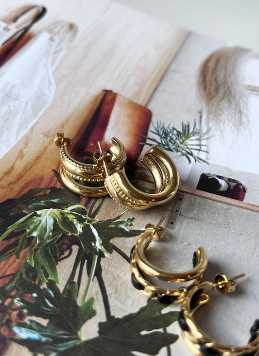BY JAM OORBELLEN THREE RINGS GOLD