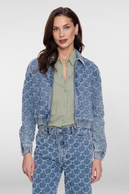 GEISHA JEANSJACKET JACQUARD CIRCLES MID BLUE DENIM