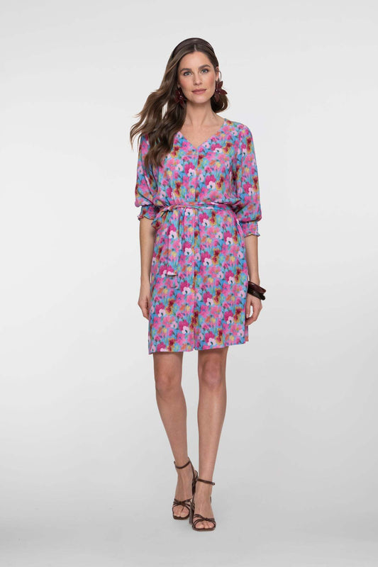 GEISHA JURK LUREX FLOWERS BRIGHT BLUE/PINK