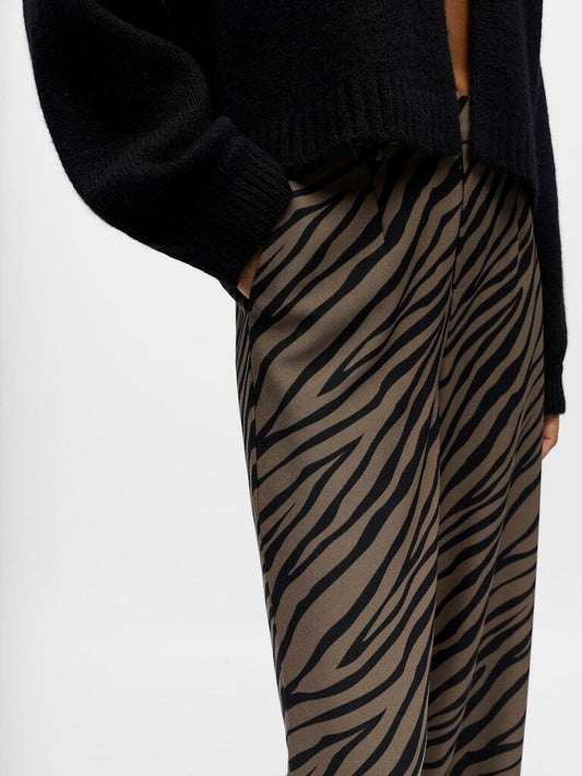OBJECT BROEK ALBA LISA WIDE BLACK/MOREL TIGER GRAPHIC