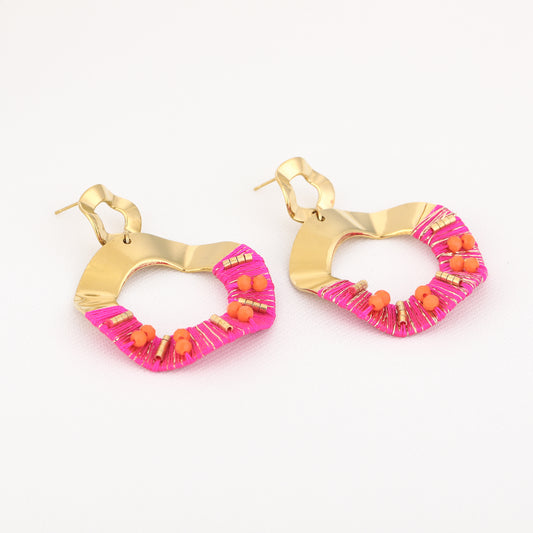 MICHELLE OORBELLEN OVAAL FUCHSIA/ORANGE