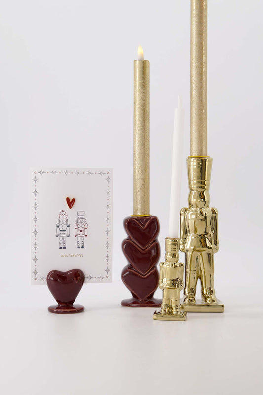 ZUSSS KANDELAAR KERAMIEK HARTJES DONKERROOD